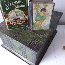 En vintage-godisburk från Linette, ofta kallad "Linette Treasure Chest Candy Tin