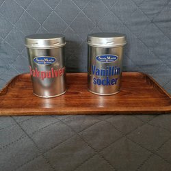 Retro plåtburkar – Rumford bakpulver, Mazetti vanillinsocker & Silvercirkeln