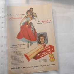 Colgate tandkräm 1950‑tal helsida reklam romantik illustration