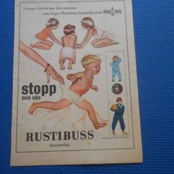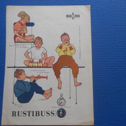 Rustibuss MAB & MYA 1950 annons + Kungsörnen pojke hund