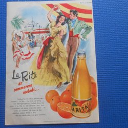 Dubbelsidig helsidesannons 1950: La Rita apelsindryck & Trelleborg damkappor