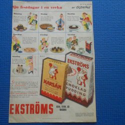 Ekströms Marsán chokladpudding 1949 & Penn Special pennor dubbelsidig