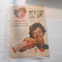 Colgate tandkräm 1950‑tal helsida reklam pärlvita tänder illustration