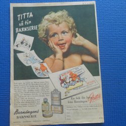 Melka sanfor pyjamas Mölnlycke & Barnängen Shantung parfym 1959 reklam