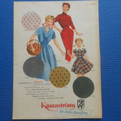 Dubbelsidig helsidesannons Kinnaströms Rayonull Silkesempt binda 1950‑tal
