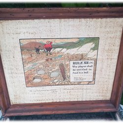 Charles Crombie konstnär för copyright Perrier tavla med Rules of Golf Rule XII
