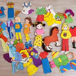 Klippdockor och kläder i pärm