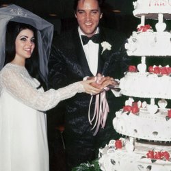 ELVIS & PRISCILLA PRESLEY MAY 1, 1968 WEDDING ALADIN HOTEL LAS VEGAS FOTO