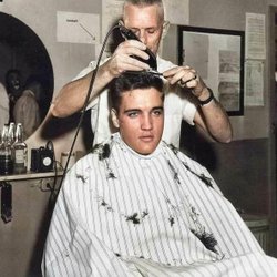 ELVIS PRESLEY GETTING HIS HAIRCUT AT FT. CAFFEE ARKANSAS COLOR PHOTOGRAPH FOTO