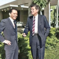 *JFK & FRANK SINATRA OUTSIDE THE SANDS HOTEL & CASINO LAS VEGAS *COLOR FOTO