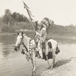 NATIVE AMERICAN INDIAN CHIEF DUCK WEARING HEADDRESS ON HORDEBACK FOTO