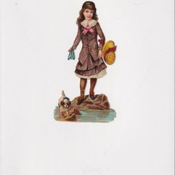 Antik glansbild bokmärke flicka