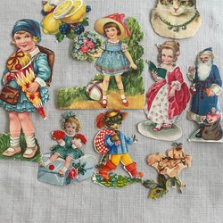 Antika bokmärken glansbilder blommor barn