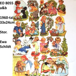 EO 8055 a&b.Eva Schildt: Barn m djur:pudel.HELkarta bokmärken. 1960t. 33x24 E.O.