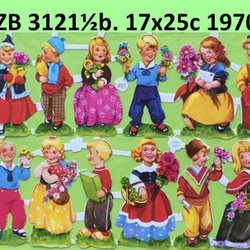 PZB 3121 ½b EAS: Flörtande barn, 1:bukett GAMMAL HALVKARTA bokmärken.1970t 16x25