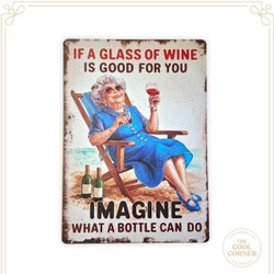 Retro plåtskylt vinmotiv – “If a glass of wine is good for you…”