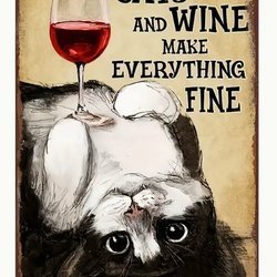 Ny Skylt plåtskylt Cats and wine make everthing fine