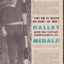 Handboll. Hallby. ... siktar på medalj. Artikel på lösblad fr Rekord nr 2-1963.