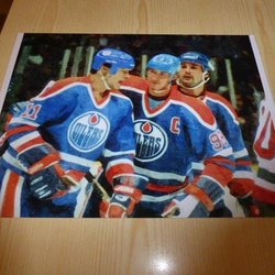 Messier & Gretzky & Caffey Edmonton Oilers NHL Art Print storlek 20 cm x 27 cm
