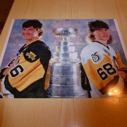 Lemieux & Jagr Pittsburgh Penguins NHL Art Print storlek 20 cm x 27 cm
