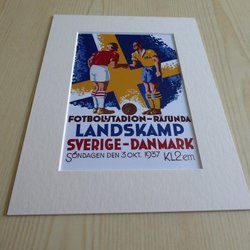 1937 Sverige - Danmark fotboll landskamp Råsunda fotografi med passepartout