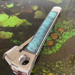 Tändare i grön onyx och mässing, vintage, 70-tal