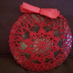 Underlägg för Glas och Flaskor Virkad i Rött Garn Diameter 15 cm