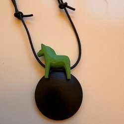 Halsband med Dalahäst, oanvänt, från ateljé Christina, trä/läder