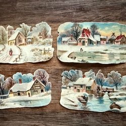4 vackra gamla glansbilder med vinterlandskap nr 722 okänd tillverkare