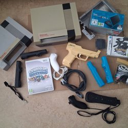 Förutom den klassiska spelkonsolen från Nintendo går det även att hitta reparationskit, massor av spel och många av spelkonsolens tillbehör.