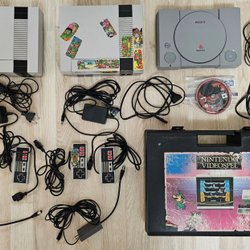 2st NES-konsoler(defekta) + Hyr-väska + 1st PS1