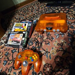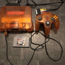 Nintendo 64 Orange - med spel och kontroll