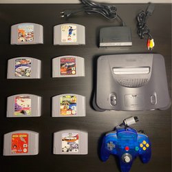 Nintendo 64 Ice Blue med spel och handkontroller