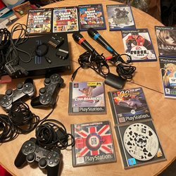 Playstation 2 med spel och tillbehör Ut för 1kr