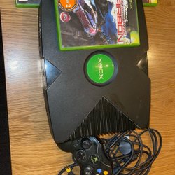 Xbox original med tillhörande handkontroller och spel