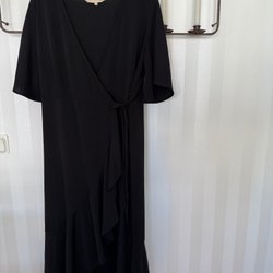 Svart klänning med trevlig design och detaljer. Elastisk viskos. Stl L