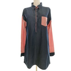 OXYGEN Dam Skjortklänning L Marinblå Bomull 100% Lång ärm Kort