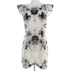 CHICA BOOTI Dam Enkel Klänning 38 Grå Kort ärm Knälängd Rund urringning