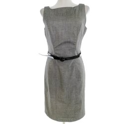 VINTAGE Dam Elegant Klänning 36 Grå Ärmlös Knälängd Rund urringning