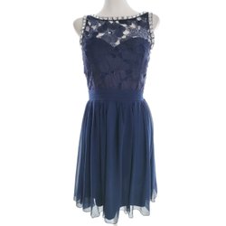 Dam Utsvängd Klänning 36 Marinblå Ärmlös Spetsbroderi Knälängd Båtringning