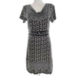 REDHERRING Dam Elegant Klänning 40 Svart Kort ärm Leopardmönster Knälängd