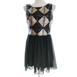 PARISIAN Dam Utsvängd Klänning 36 Svart Ärmlös Paljetter Knälängd Rund