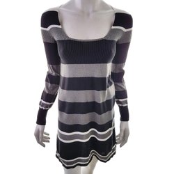 OASIS Stickad Klänning 34 Svart Lång ärm Kort U-ringning