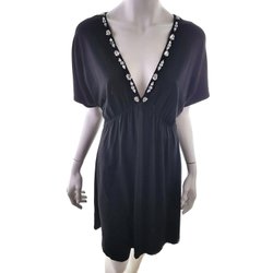 EXCLUSIVE BY TARA A-linjeformad Klänning L Svart Viskos Kort ärm Kristaller