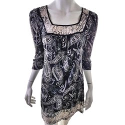 NEXT Miniklänning 38 Svart Viskos 100% 3/4 ärm Paljetter Kort Fyrkantig