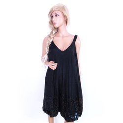 CULTURE Dam Sommarklänning M Svart Viskos Ärmlös Paljetter Midi V-ringning