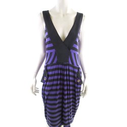 VINTAGE Dam Miniklänning M Lila Kort ärm Kort V-ringning