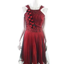VINTAGE Dam Balklänning/Aftonklänning 30 Röd Ärmlös Pärlor Midi Off shoulder