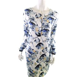 TWO DANES Dam Stickad Klänning L Turkos Bambu Lång ärm Knälängd Polo