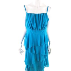 NEW YORK LAUNDRY Dam Axelbandklänning S Blå Ärmlös Broderi Midi Fyrkantig